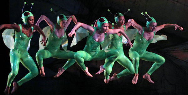 Two of the pieces from this weekend’s performance, “Gossamer Gallants” and “The Uncommitted” were 2011 premieres, and were new to me. “Gossamer Gallants” was a comedic romp, which at the beginning reminded me of Matthew Bourne’s all male “Swan Lake.” The gallants were a group of muscular male fireflies, not what one might anticipate for the daintiest of insects. The male fireflies’ movements were bold and boisterous; and the female fireflies, who entered later, were cheeky and flirty. One of my favorite parts involved each of the gallants, in an act of chivalry, removing their gossamer wings so that the female flies’ feet wouldn’t get muddied. The female flies could care less and exited without a gesture of thanks, and the final gallant was left to wring out his soaked wings. Ultimately, the females triumphed over the gallants in the rousing conclusion. With the election a week away, I couldn’t help but be reminded of the candidates desperately seeking to court women voters. Perhaps the powerful ending was a harbinger of things to come.