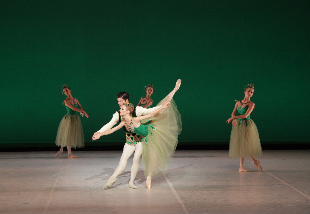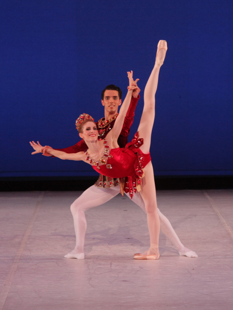 I realized tonight why I enjoy Ellen Overstreet’s performances so much. She relishes the pure pleasure of dance as if the music brings her limbs to life; and she simply follows it wherever it takes her. Edward Gonzalez was yet again a wonderful partner for Ellen, and his steadiness and grace complements her beautifully. I must give kudos to Elizabeth Sykes who is always fun to watch; because she brings such joy to the stage. The “Emeralds” costumes were truly exquisite, and I was so happy to see my birthstone receive such an eminent display.