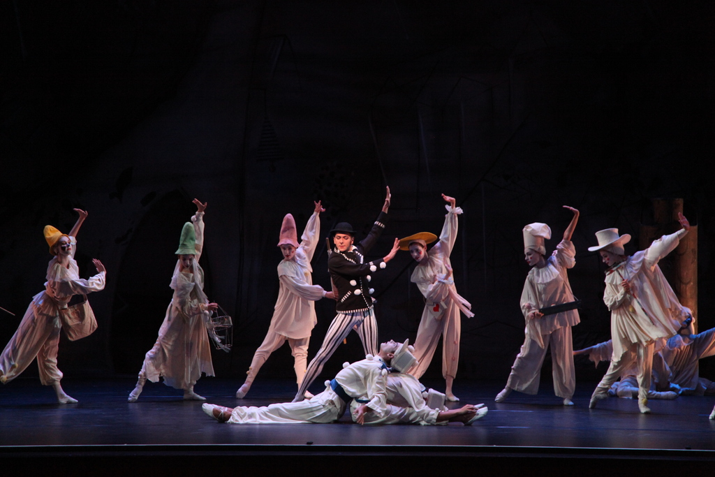 The rest of the evening was more typical of the Sarasota Ballet. Graziano, who is the Sarasota Ballet’s secret weapon, is back after recovering from an injury and better than ever. He brought so much gravitas and soul to the role of the Poet (based on Rimbaud) in Sir Frederick Ashton’s piece “Illuminations.” I can’t pretend to understand exactly what was happening in this piece pitting the poet’s Sacred Love (Amy Wood) against his Profane Love (Ellen Overstreet). This dreamlike ballet featured bizarre and elaborate costumes and sets, and the piece was transporting. The company did a beautiful job with “Illuminations” nicely complemented by the orchestra conducted by Ormsby Wilkens and the tenor Jason Ferrante. “Illuminations” was so dramatic and exciting, and the aforementioned leap by Graziano over the head of a rather tall dancer made the piece even more astonishing.