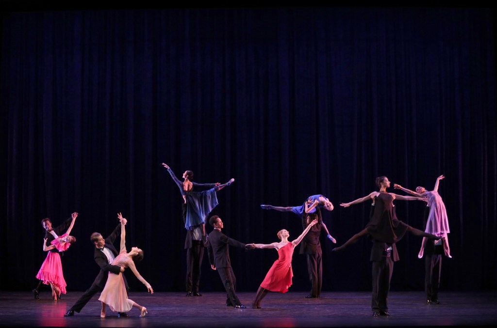 I’m a big Twyla Tharp fan and who doesn’t love the repertoire of old blue eyes, so I have been eagerly anticipating “Nine Sinatra Songs” all season. These are two American classics that are perfectly paired – Tharp and Sinatra – in this beautiful, life affirming piece. This has been a rough year, and as Sinatra said, “that’s life,” or what Jon Kabat-Zinn has referred to more recently as “full catastrophe living.” We’ve all been “flat on our face” trying to figure out how to manage this pandemic and yet there has been something so therapeutic about the whole world experiencing something so life-changing all at once. So, now it’s time “to pick (ourselves) up and get back in the race.” I always enjoy when Ricardo Rhodes and Danielle Brown perform a duet, and they gave a classy performance of “That’s Life,” reminding us of all that is bright and wonderful in the world. A break-out star of this piece was Marijana Dominis, who was promoted to soloist this season, in “Make it One for My Baby,” who was paired with seasoned performer Graziano. Dominis had so much musicality in her movement and the two gave a sultry performance that was alluring and magnificent. Ricki Bertoni got to demonstrate his character actor chops throwing himself into “Somethin’ Stupid” in what seemed to be an homage to Charlie Chaplin. He was light on his feet, heavy in his heart, and endless fun to watch.
